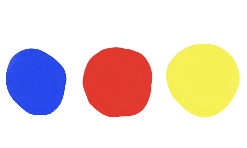 1. Nimm nur Rot, Blau und Gelb (und Weiß, wenn du magst).