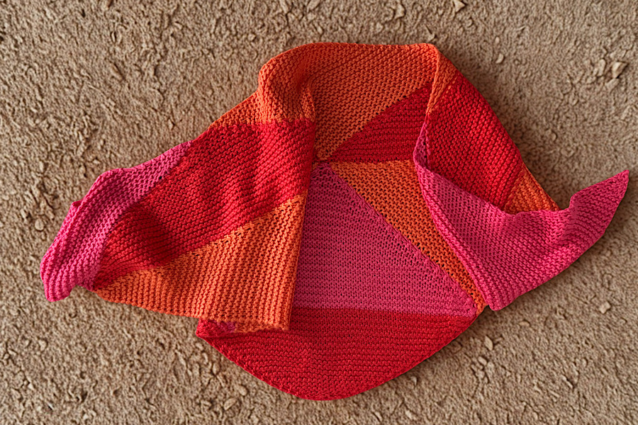 Das Tuch „Salmi“ ist fertig geworden – begonnen auf der ersten Bulli-Tour des Jahres, vollendet an einem stürmischen Nordseetag.